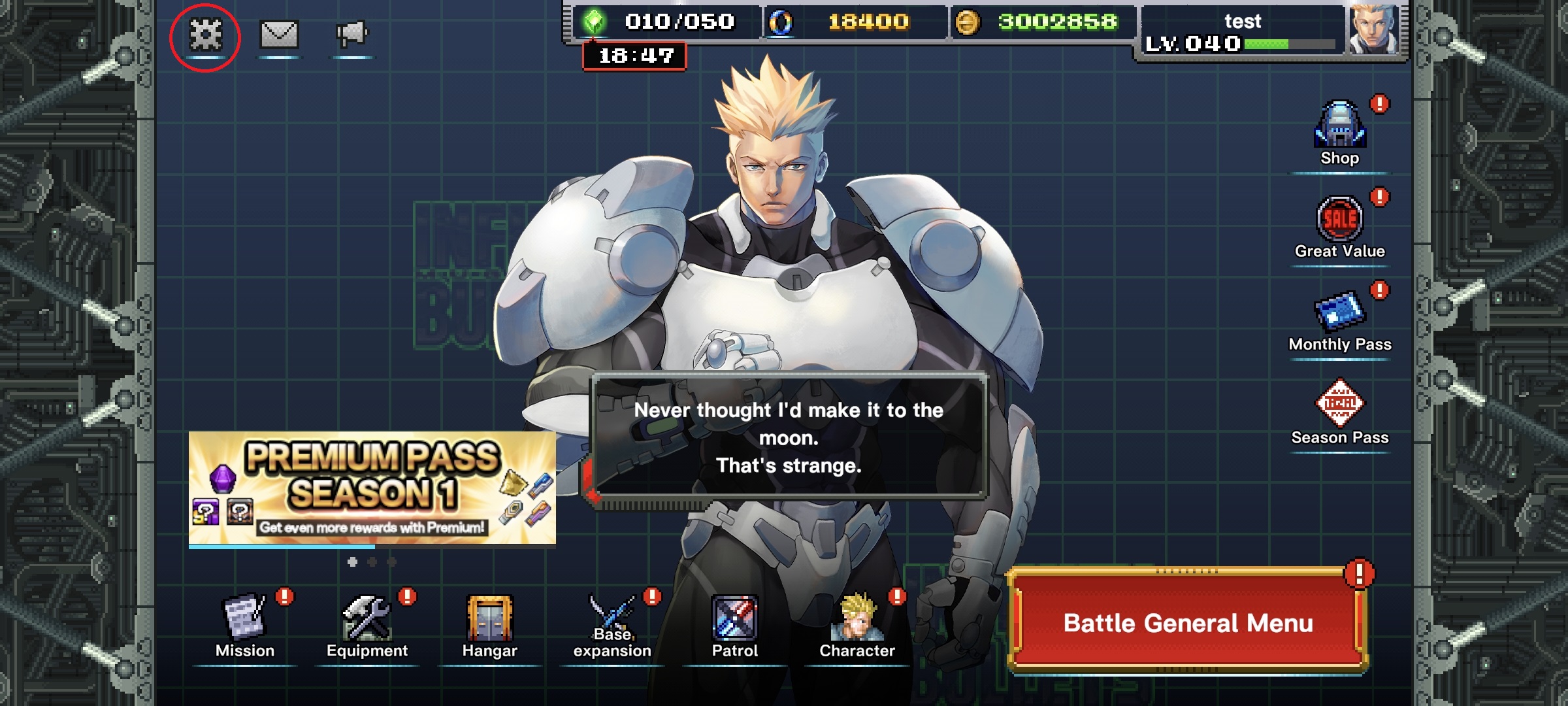 ホーム画面左上にある⚙アイコンを選択 |