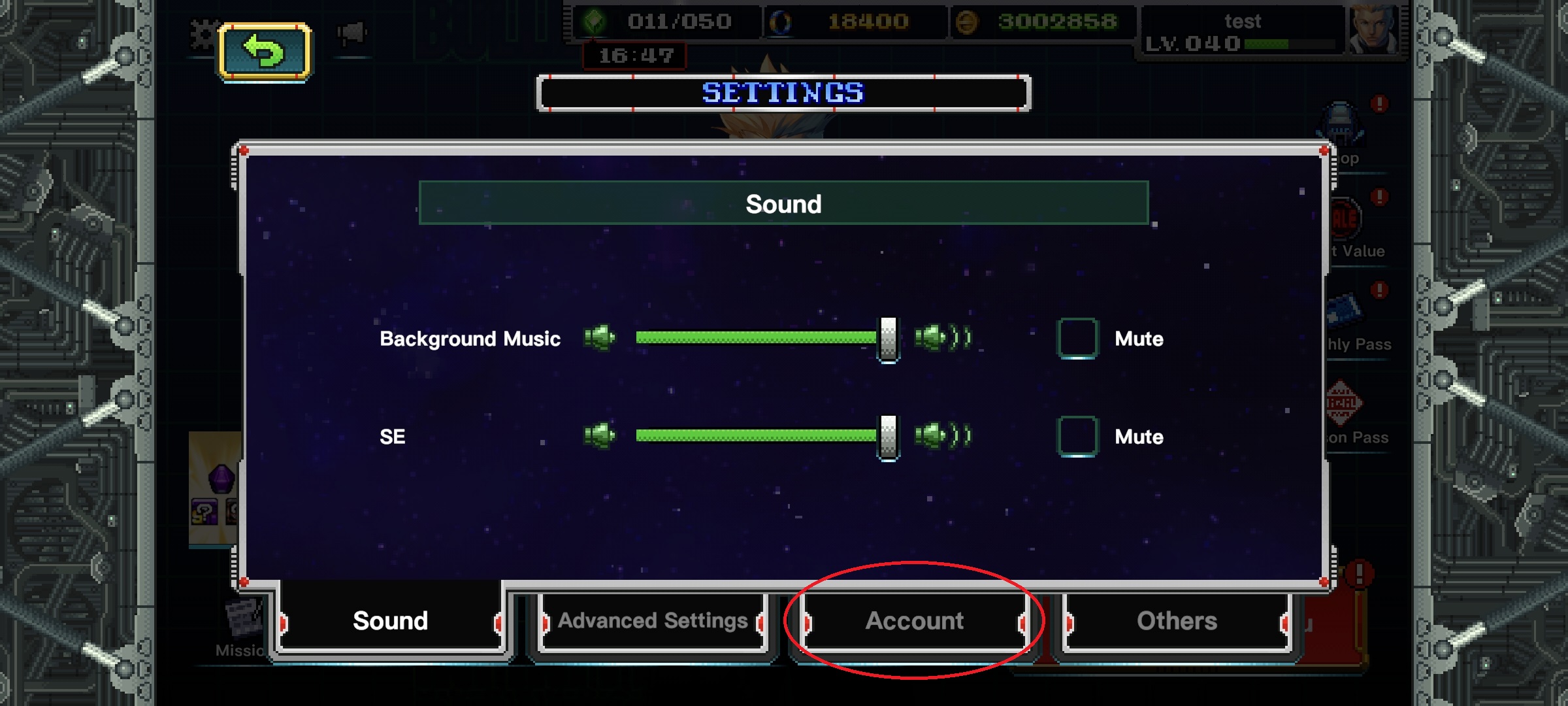 アカウントタブを選択 |